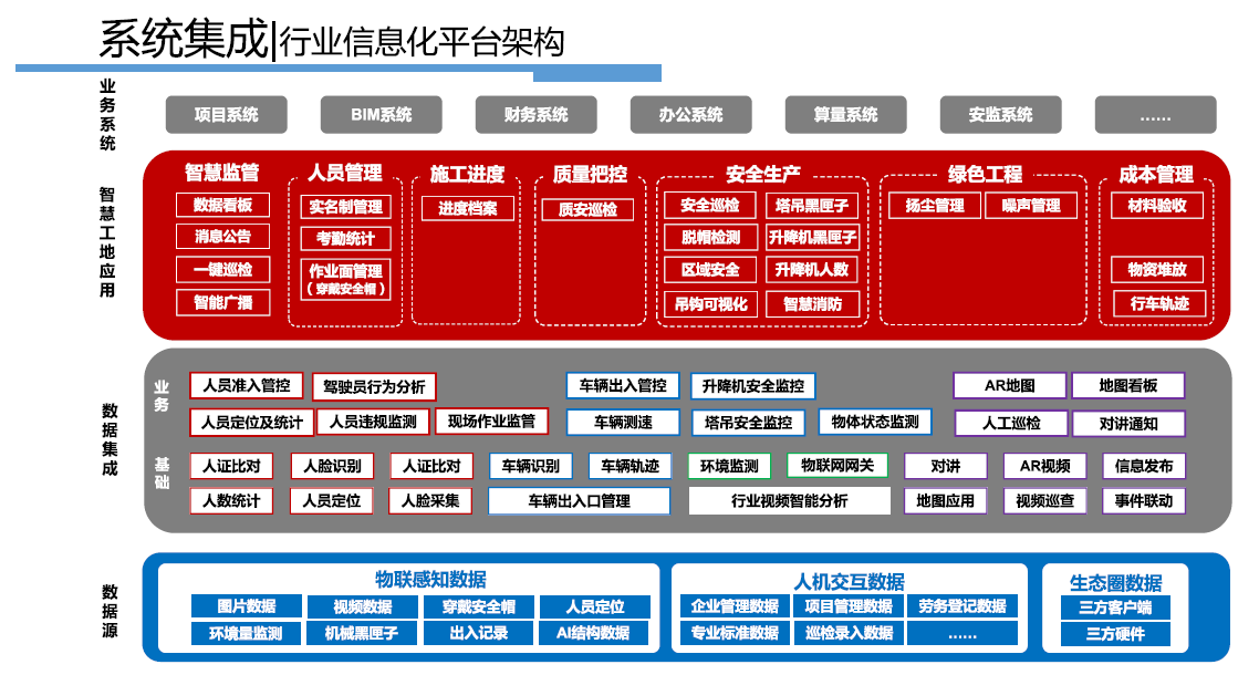 BIM+智慧工地系统是以进度为主线,成本为核心,利用LOT、BIM、大数据、AI等核心技术,集成项目软、硬件系统,实时汇总数据,实现建筑实体、生产要素、管理过程的全面数字化,为项目提供生产提效、管理有序、成本节约、风险可控的项目数字化解决方案。